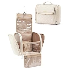 BAGSMART Toiletry Bag Travel Makeup Bag with Hanging Hook, Cosmetic Bag Make Organizer Case, Large Capacity Water-resistant Organizer for Toiletries Accessories Brushes Sponge, Beige