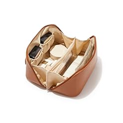 LACATTURA Double Layer Makeup Bag for Women, Leather Travel Toiletry Bag, Large Cosmetic Case with Adjustable Divider, Portable Make Up Organizer, Brush Holder, Beauty Storage Bags for Girls, Brown