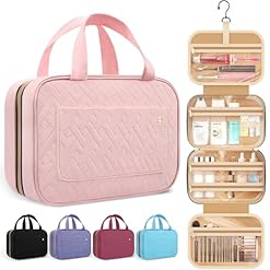 HOTOR Travel Toiletry Bag for Women with Hanging Hook – Portable Cosmetic Case, Toiletry Bag for Traveling Women, Waterproof Travel Essentials, Pink