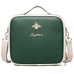 LACATTURA Travel Makeup bag, Leather Makeup Train Case Cosmetic Organizer for Makeup Brushes Toiletry Digital Accessories, Portable Artist Storage Bag With Shoulder Strap for Women lady Green