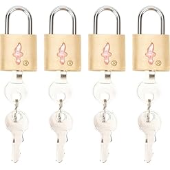 4 Pack TSA Approved Travel Luggage Locks with Keys, Solid Brass Copper Keyed Padlock, Small Locks for Suitcase, Backpack, Gym Locker, Jewelry Box, Gold-by GIVERARE