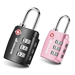 2 Pack TSA Approved Travel Luggage Locks, Combination Lock Keyless, 3-Digit Padlocks, Travel Sentry Accepted Compatible Padlock for Gym Locker, Golf Bag Case, Backpack, Black-by GIVERARE