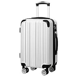 Coolife Luggage Expandable(only 28″) Suitcase PC+ABS Spinner 20in 24in 28in Carry on (white grid new, S(20in)_carry on)