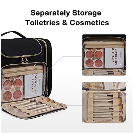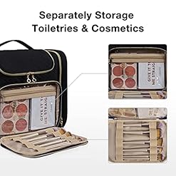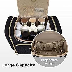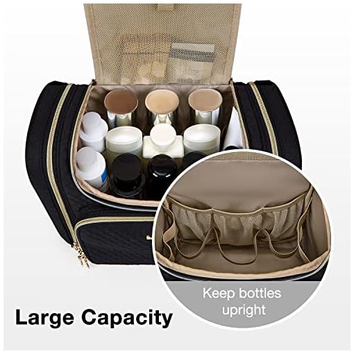 BAGSMART Toiletry Bag, Travel Toiletry Bag for Women, Water-resistant Cosmetic Makeup Bag, Large Capacity Door Room Essentials Travel Organizer for Full Sized Toiletries and Cosmetics, Black