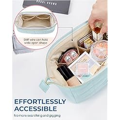 【CONVENIENT DESIGN】- The wide opening design of this makeup bag allows for effortless access to all your beauty essentials. Say goodbye to wasting time searching through tiny cosmetic bags. With this women’s makeup bag, you can quickly find your desired cosmetics like lipstick or eyeshadow.