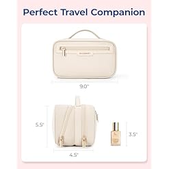 【Premium Quality】This BAGSMART cosmetic bag is made of water-resistant polyester for excellent durability and protection. This make up bag features custom metal zippers that ensure smooth operation, and a sturdy leather top handle that makes it easy to carry. Its well-organized interior, combined with its fashionable design and portability, make it an ideal choice for a stylish and convenient makeup bag.