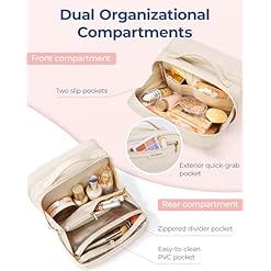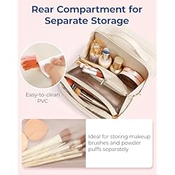【Easy-to-Clean Pockets】This makeup travel bag comes equipped with 1 PVC stain-resistant zipper pocket, ideal for storing a full set of makeup brushes, sponges, and powder puffs. A simple wipe-down keeps them clean, eliminating worries about makeup stains.