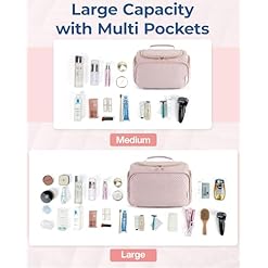 𝐋𝐚𝐫𝐠𝐞 𝐂𝐚𝐩𝐚𝐜𝐢𝐭𝐲: Medium size – 10.2”L x 5.5”Wx 7.3”H. Large size – 12.2”L x 7.1”Wx 8.7”H. The travel toiletry bag can perfectly organize your necessary travel toiletries and makeup storage