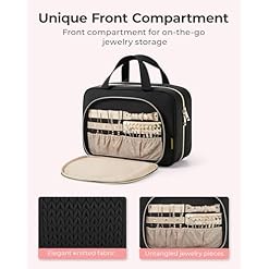 𝐉𝐞𝐰𝐞𝐥𝐫𝐲 𝐂𝐨𝐦𝐩𝐚𝐫𝐭𝐦𝐞𝐧𝐭: Bagsamrt toiletry bag is design with jewelry organizer compartment. Adding a compartment in the front pocket of travel bag for rings, ear rings, bracelets, bangles, necklaces, and other jewelries, meeting your travel toiletries and makeup needs