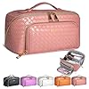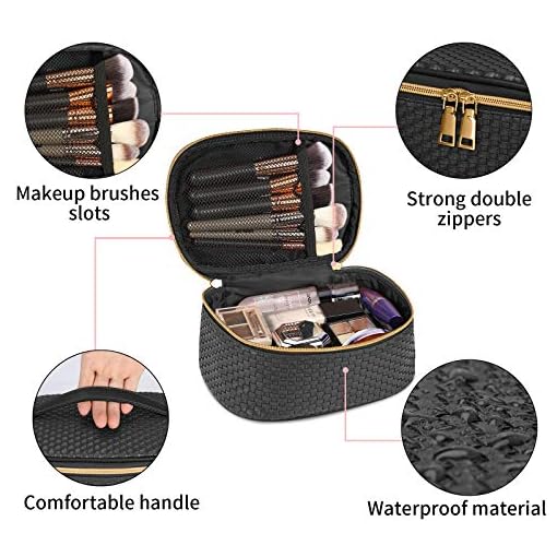 【Durable & Water-Resistant】- Classic and elegant cosmetic bag is made of PU woven leather and polyester lining. It is durable, waterproof, dirt-resistant and scratch resistant. Coupled with the advanced and smooth metal double zipper design, when the tools are stored neatly, you will easily get what you need.