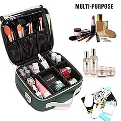 LACATTURA Travel Makeup bag, Leather Makeup Train Case Cosmetic Organizer for Makeup Brushes Toiletry Digital Accessories, Portable Artist Storage Bag With Shoulder Strap for Women lady Green