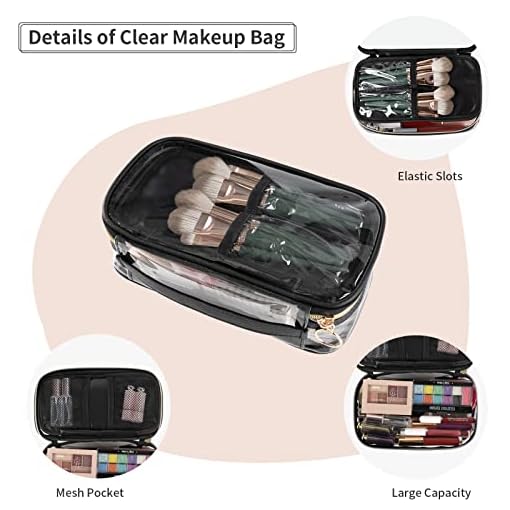 OCHEAL Clear Makeup Bag, Portable Storage Organizer Cosmetic Travel Bag Cute Pouch For Women and Girls Cosmetics Bags with Divider Brush Compartment-Transparent