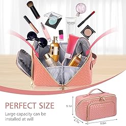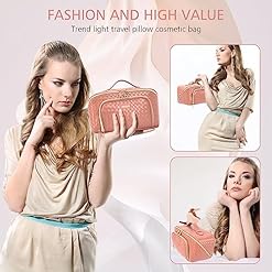 💝【Large Capacitgy Travel Cosmetic Bag】The large makeup bags for women is designed with multiple divisions and compartments, which can store not only your cosmetics,essential oils, Toiletries kits, valuables, etc. It can be organized to accommodate the cosmetics and makeup tools you need.