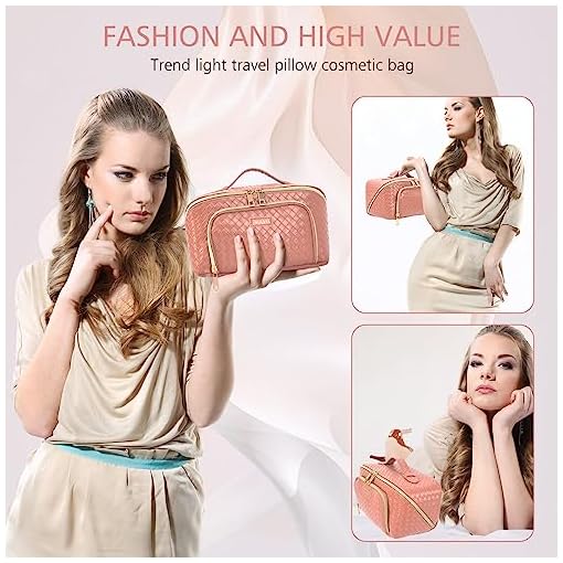 ZAUKNYA Large Capacity Travel Cosmetic Bag,Makeup Bag for Women Leather Waterproof Portable Pouch Open Flat Make Up Bag Organizer with Divider and Handle Travel Makeup Bag(ZZP-Pink)