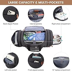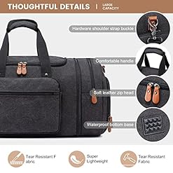 【Expandable Design & Fine Craftsmanship】: 22(L) x 9.8(W) x 11.8(H) inch. Pull down 2 side zippers to extend the bag to 26 inches long. This travel bags for men come with rounded stitched grip handles & padded adjustable, removable shoulder strap. It has 3 carrying ways: hold on hand, carry on the shoulder or cross body.