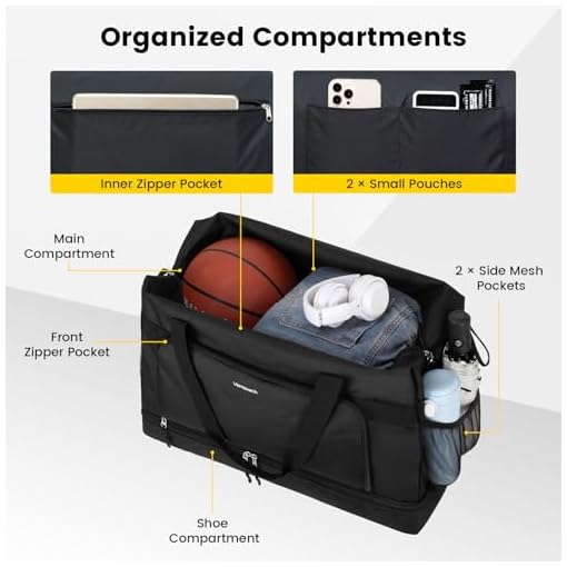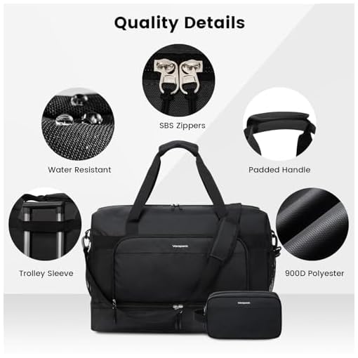 Vorspack Duffle Bag for Travel – 50L Travel Duffel Bags with Toiletry Bag Large Gym Bags for Men Sports Overnight Weekender Bag with Shoe Compartment – Black