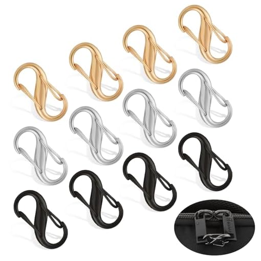 Ouligay 12 Piece Zipper Lock Clips, Backpack Locks Zipper, Replacement Zipper Pulls, Small Dual Opening Spring Clips, Anti-Theft S Small Carabiner Clips for Camping Fishing Traveling Outdoor Sports