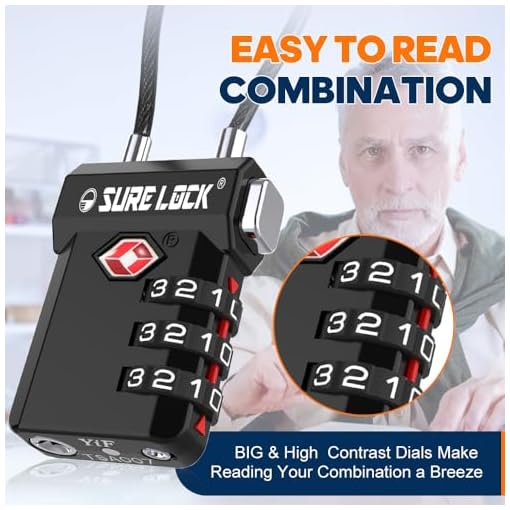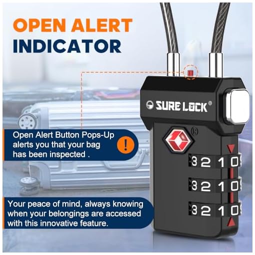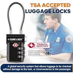 SURE LOCK TSA Approved Luggage Locks, Open Alert, Easy Read Dials, Travel Luggage Locks for Suitcase, Baggage Locks