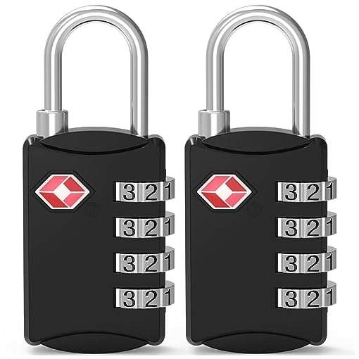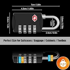 TSA Luggage Locks, [New Version] 2 Pack 4 Digit Outdoor Waterproof Padlock, Combination Lock for Backpack, Locker, Gate, Toolbox, High-Strength Zinc Alloy Steel – Black
