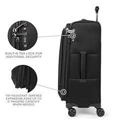 Spinner luggage has tapered expansion design keeps the center of gravity low to help reduce tipping while providing up to 2” additional packing capacity. Built-in lock allows TSA authorities to safely unlock and relock for inspection when needed. Default code is set to 0-0-0.