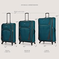 Travel in style with your essentials packed inside this Aviron Bay luggage collection from U. S. Traveler. U. S. Traveler’s Aviron Bay luggage collection is crafted from durable twill polyester. Each case is detailed with four multi-directional spinner wheels, a telescoping handle for easy mobility, and top and side grab handles that make it easy to lift. The interior includes tie-down straps to hold garments in place and a zippered mesh pocket underneath the lid. The added expansion option also helps with those extra purchases made while traveling! Made from durable twill polyester fabric. A push-button multi-stage handle adjusts to different heights. A large interior zippered mesh pocket for easy organization. Features four 360-degree spinner wheels for easy mobility. Includes a 2-inch expansion gusset for extra packing space. All pieces roll upright so there is no weight on your arm. Includes a full interior lining with compression straps to keep items in place. Top, bottom and side carrying handles for easy handling. The exterior boasts two large exterior pockets for last minute items. 31″ Spinner’s Exterior Dimensions: 31”H x 18”W x 11”D + 2” Exp. (8. 57 lbs. ) 31″ Spinner’s Interior Dimensions: 28”H x 18”W x 11”D + 2” Exp.