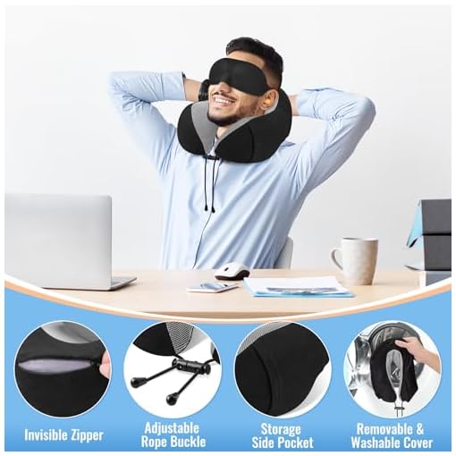 CloudBliss Travel Pillow Premium Memory Foam, Comfortable & Supportive Neck Pillow, Pain Relief Sleeping Neck Pillows for Travel, Airplane Pillow for Sleeping Airplane, Car, Office and Home(Black)