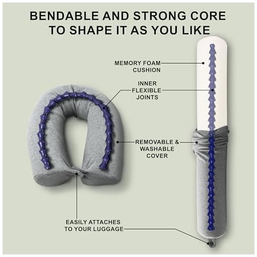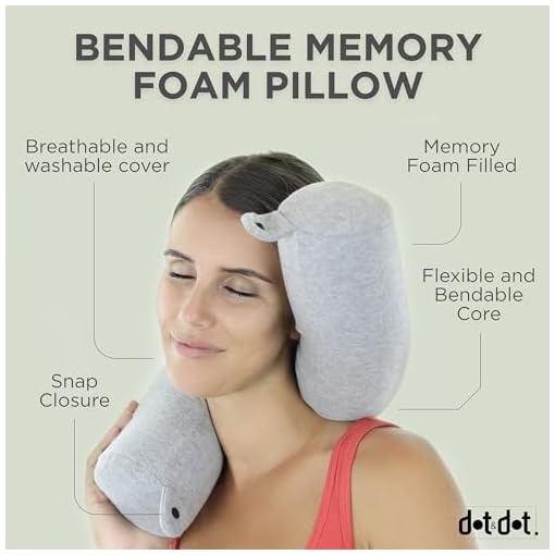 Dot&Dot Twist Memory Foam Travel Pillow for Airplanes – Travel Neck Pillow for Sleeping – Airplane Pillow for Neck Support, Chin, Lumbar and Leg – Adjustable, Bendable Neck Roll Pillow