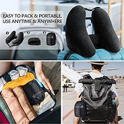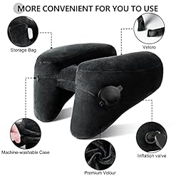 Neck Pillow for Travel Inflatable Airplane Pillow Comfortably Supports Head, Neck and Chin, Inflatable Travel Pillow with Soft Velour Cover and Portable Drawstring Bag (Black)