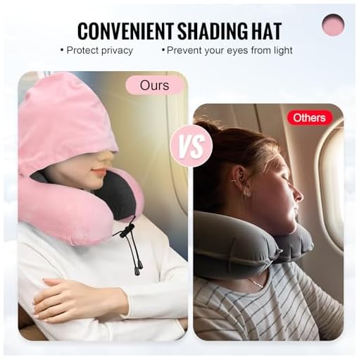 【New Hooded Design】 The hood designed travel pillow helps block out the light, eliminating the need of an extra pair of eye masks, allowing you to rest better on the travel. In addition, the neck pillow included earplugs reduce external noise disturbances, further improving the quality of your rest.