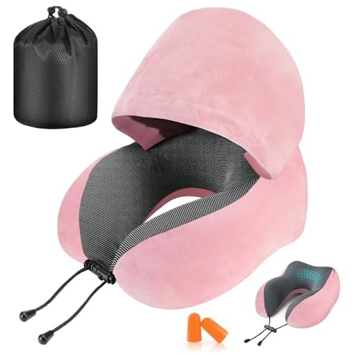 Travel Pillow, Neck Pillow for Travel with Hood for Airplane, Velvet Memory Foam Neck Pillow Women Lady Head & Neck Support, for Long Flights Plane, Office, Cars Sleeping & Rest (Pink)