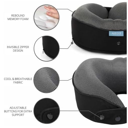 **LIGHTWEIGHT AND SPACE SAVING** – The Airest memory foam travel pillow is lightweight and fits into our carrying case, keeping it clean while not being used. Material is machine washable.