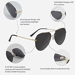TIJN Classic Aviator Sunglasses for Men Women Driving Sunwear Shades, Premium Polarized Lens