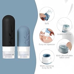 Tsa Approved Leak Proof Travel Toiletries Bottles: The silicone bottles are designed with 3-layer leak-proof with a sturdy flip-top lid and a drip-free valve to protect your bottle from spills, leaks or drips during transport, prevent your expensive cosmetics from leaking during travel, with our unique leak-proof design