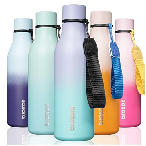 BJPKPK Insulated Water Bottles, 18 oz Stainless Steel Metal Water Bottle with Strap, BPA Free Leak Proof Thermos, Mugs, Flasks, Reusable Water Bottle for Sports & Travel, Oasis
