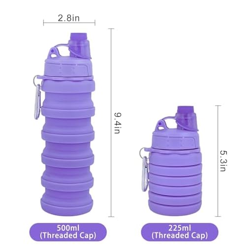 Collapsible Water Bottles Two Pack Travel Sports Portable Sport Water Bottle comes with mountaineering Buckle 500ml silicone Water-proof camping water bottle (Purple and Grey Color)
