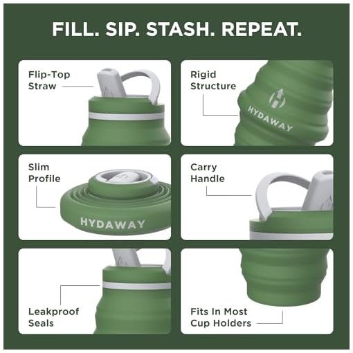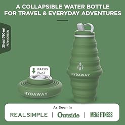 HYDAWAY Collapsible Water Bottle – 25oz I Reusable Water Bottle with Flip Top Lid for Travel, Hiking, Backpacking I Portable & Leakproof, Food-Grade Silicone, BPA Free, Collapses to 1.5”