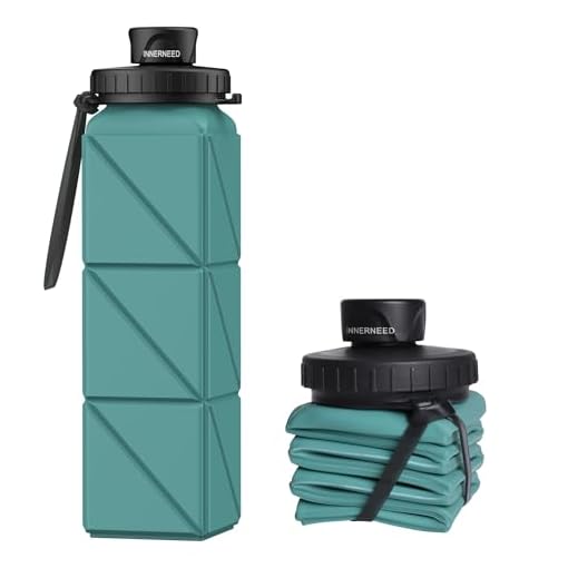 INNERNEED Collapsible Water Bottle, Reuseable BPA Free Silicone Foldable Water Bottles for Travel Gym Camping Hiking, 20.6 fl.oz, Portable, Food-Grade, Leak Proof (1 Pack, Dark Green)