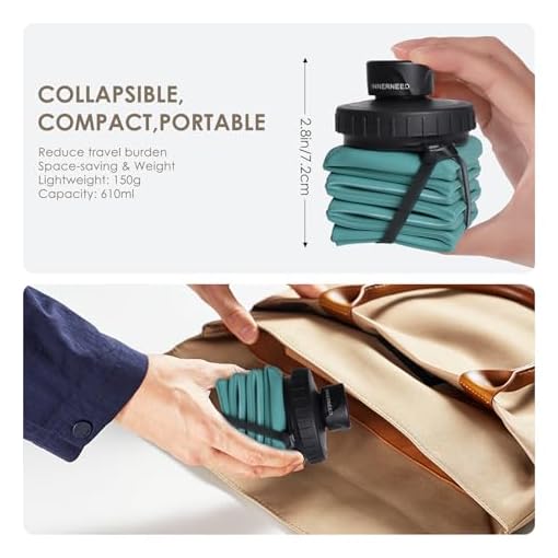 COLLAPSIBLE FOR EASY CARRYING: Say goodbye to bulky! The INNERNEED Collapsible Water Bottle brings unparalleled convenience to everyday life. It is designed to fold up into a palm size when not in use, and the lightweight of the bottle makes it easier to carry in your bag or pocket. The folded size is 2.8 inches (H) * 2.6 inches (W). Weight: 152g (0.33lb)