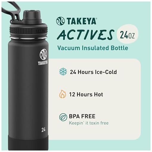 24-Hour Cold Retention: The Takeya Actives Stainless Steel Bottle, with its durable powder-coated finish, delivers remarkable insulation. Its double-wall vacuum construction ensures beverages stay hot for up to 12 hours and icy cold for up to 24 hours.